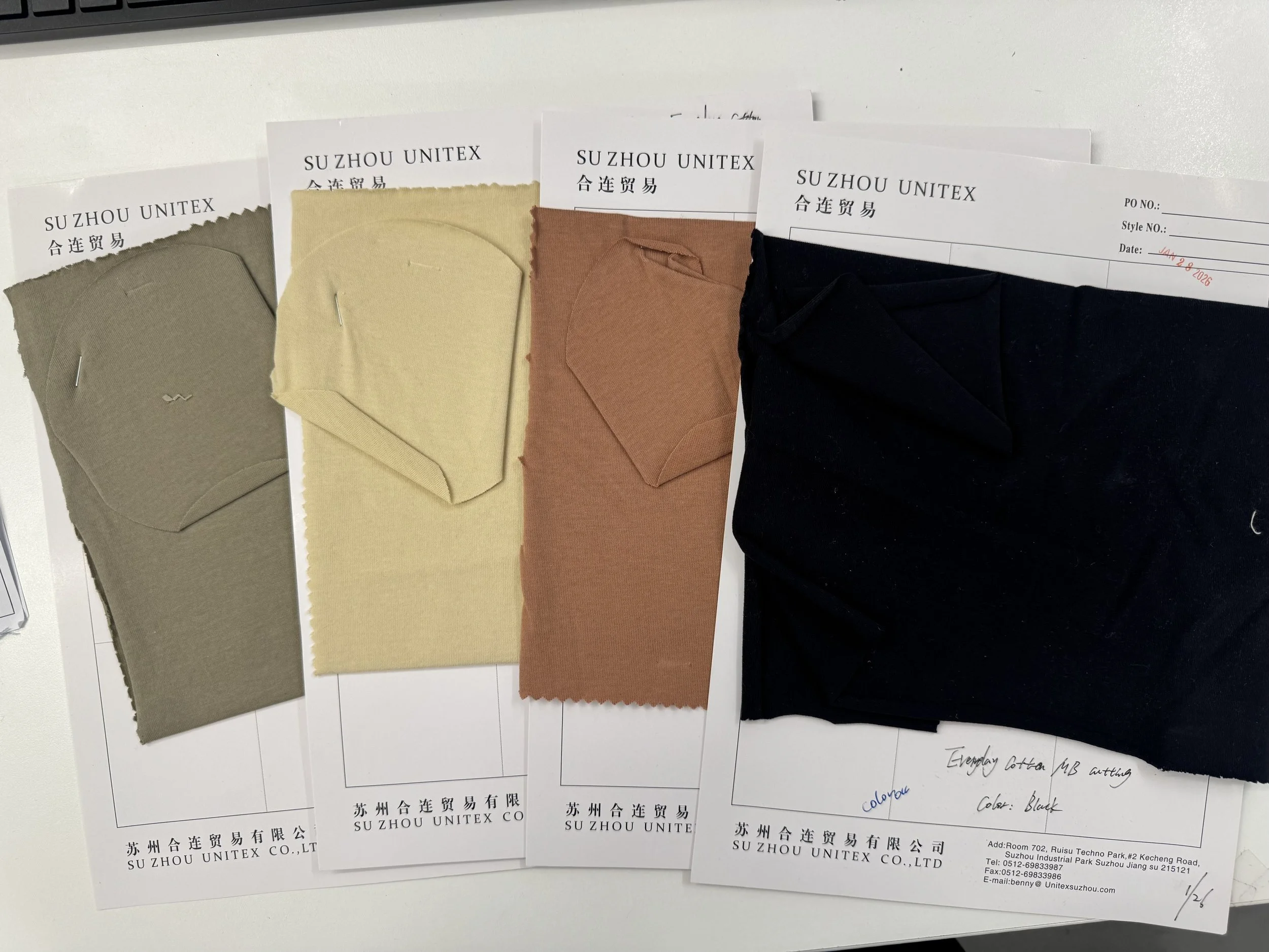 Fabric development was carried out through close communication with mills and factories throughout the process. Multiple jersey fabric options were developed and reviewed to achieve the target weight suitable for summer wear. Each fabric was carefully evaluated for hand feel, stretch, cost, color options, and overall quality to ensure it aligned with the desired fit and product direction.