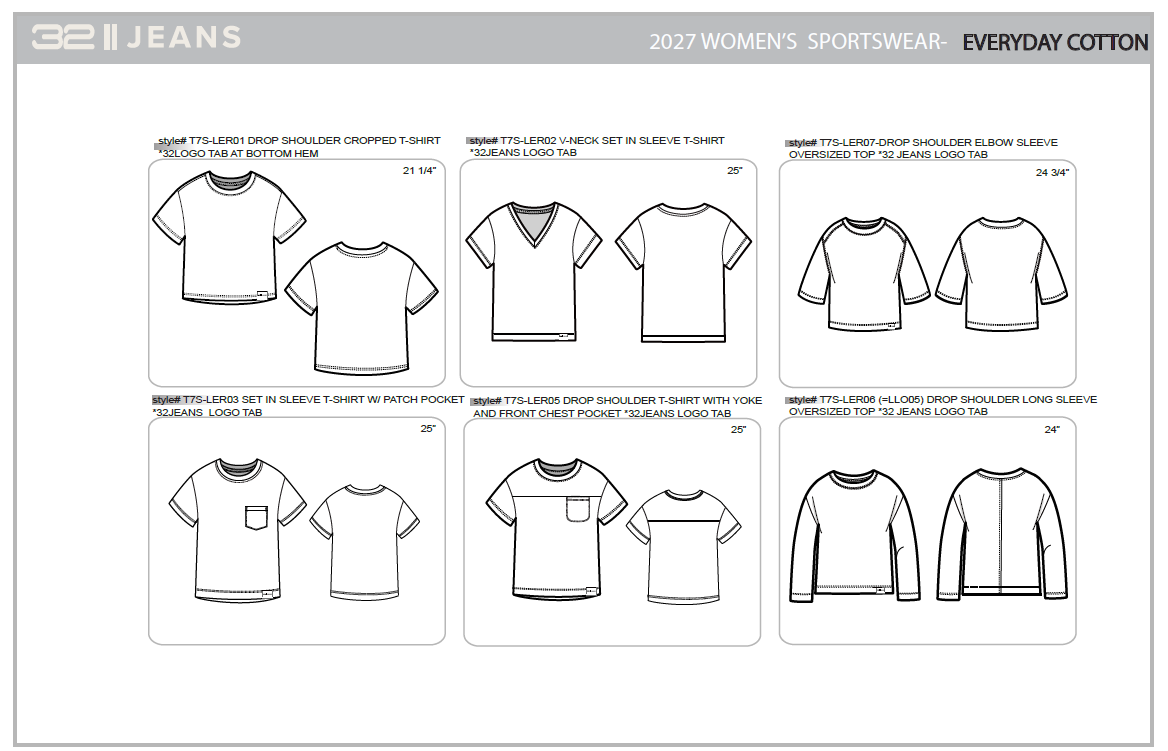 Scope: Tee design and development, fit direction, fabric sourcing, vendor communication, and technical package creation
