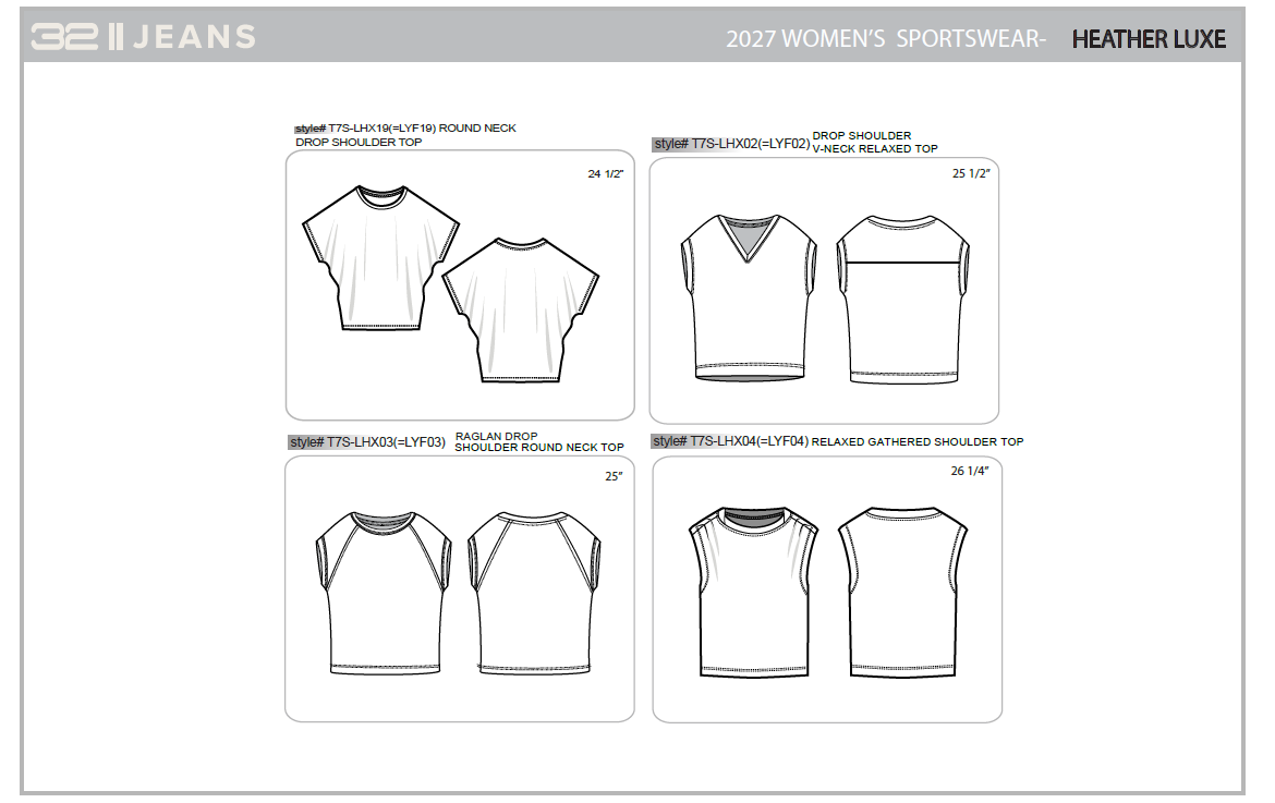 I used this proven fit direction as a foundation and developed our own versions by refining proportions, construction, and fabric choices to fit our brand’s direction.