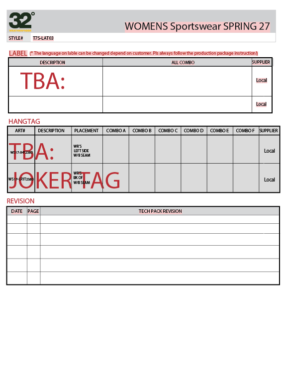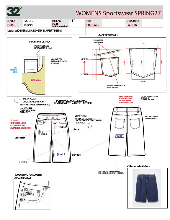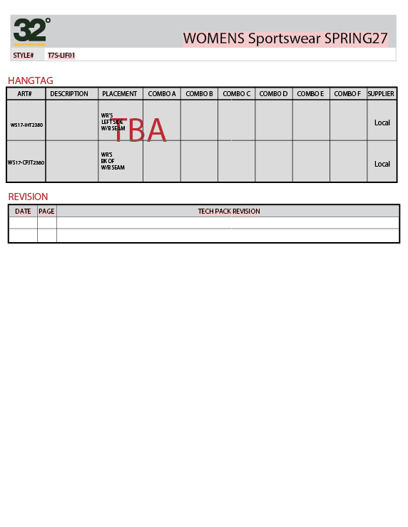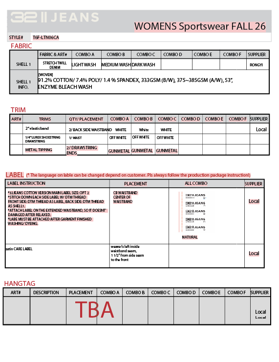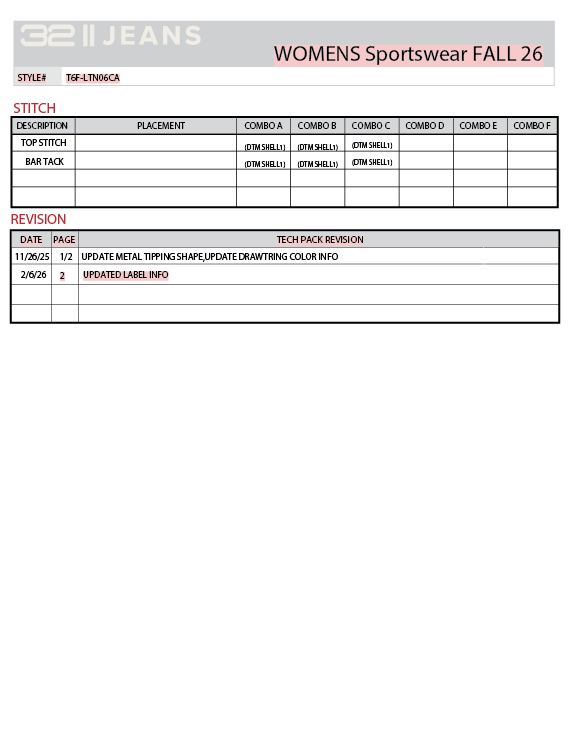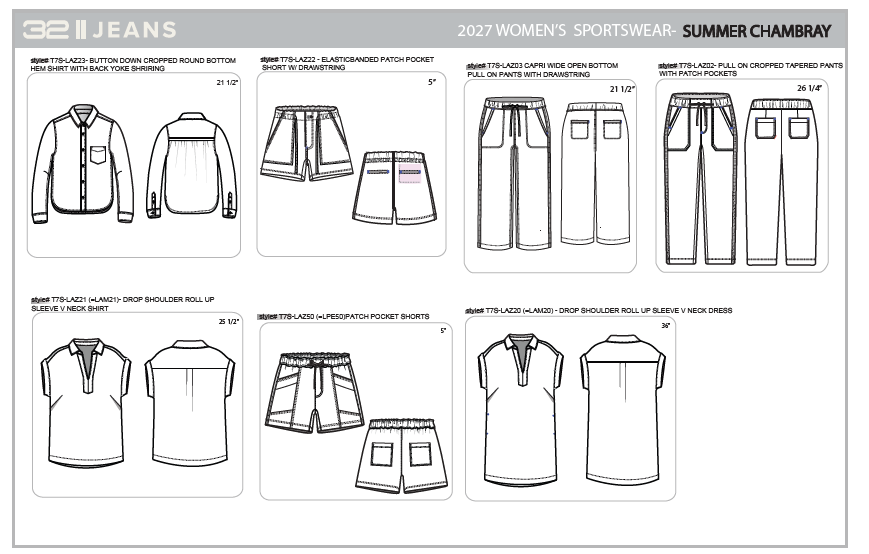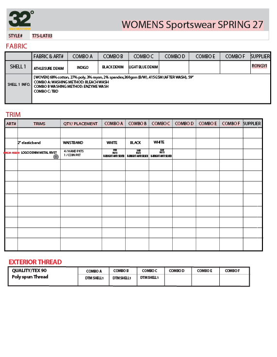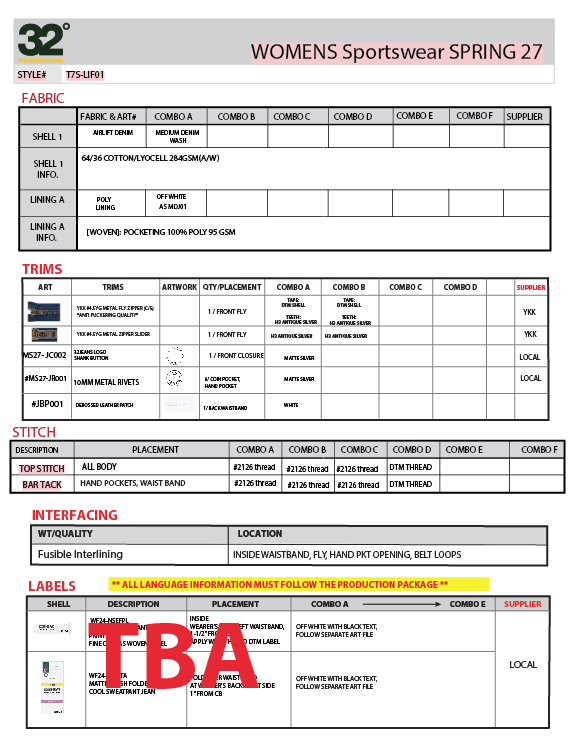 Scope: Fit development, fabric selection, vendor communication, tech pack creation