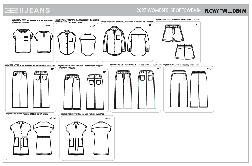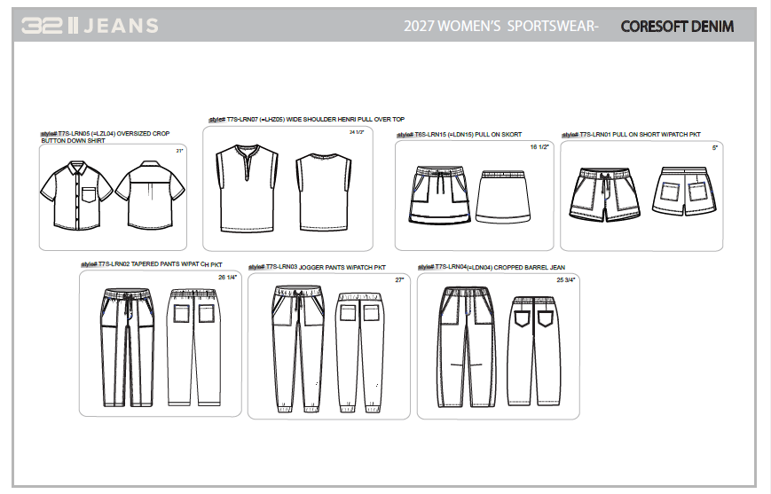 32 JEANS is a denim line designed for everyday wear, focusing on comfort, clean silhouettes, and commercial viability.